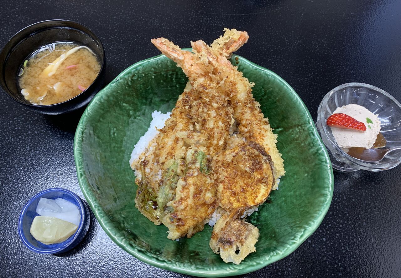 我々が注文した「海老天丼」は、普通の成人男性であれば満足出来る量でした(妻には多かったようで、妻の残りもいただきました)。